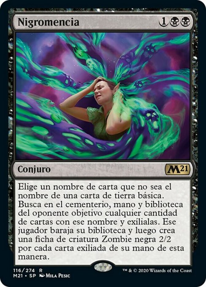 | Rules | Choose a card name other than a basic land card name. Search target opponent's graveyard, hand, and library for any number of cards with that name and exile them. That player shuffles, then creates a 2/2 black Zombie creature token for each card exiled from their hand this way. |