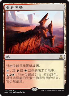 | Rules | Needle Spires enters the battlefield tapped. : Add or . : Needle Spires becomes a 2/1 red and white Elemental creature with double strike until end of turn. It's still a land. |