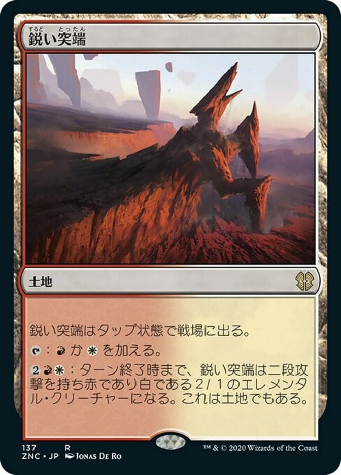 | Rules | Needle Spires enters the battlefield tapped. : Add or . : Needle Spires becomes a 2/1 red and white Elemental creature with double strike until end of turn. It's still a land. |