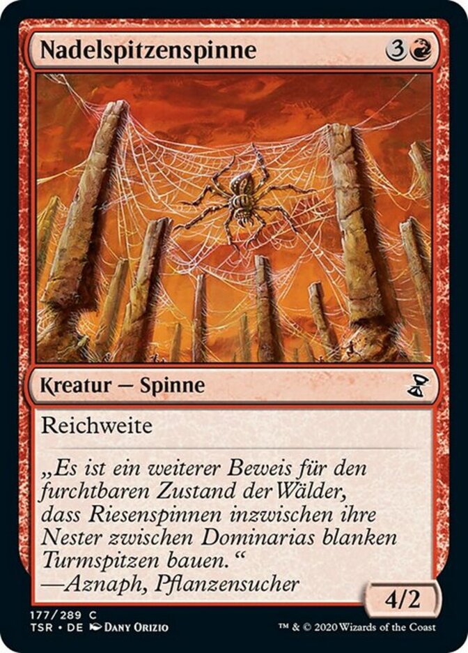 | Flavor | "It's a testament to the forests' devastation that giant spiders now make their homes amid Dominaria's barren spires."-Aznaph, greenseeker |