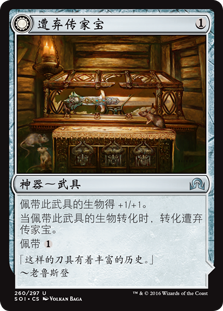 | Rules | Equipped creature gets +1/+1. When equipped creature transforms, transform Neglected Heirloom. Equip // Equipped creature gets +3/+3 and has first strike. Equip |