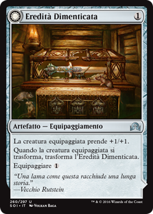 | Rules | Equipped creature gets +1/+1. When equipped creature transforms, transform Neglected Heirloom. Equip // Equipped creature gets +3/+3 and has first strike. Equip |