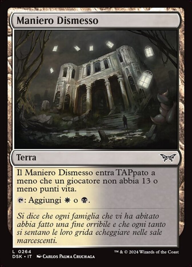 | Rules | Neglected Manor enters tapped unless a player has 13 or less life. : Add or . |