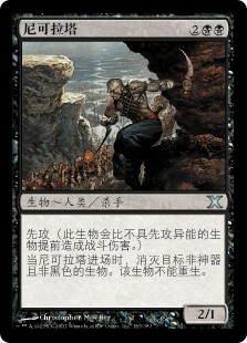 | Rules | First strike When Nekrataal enters the battlefield, destroy target nonartifact, nonblack creature. That creature can't be regenerated. |