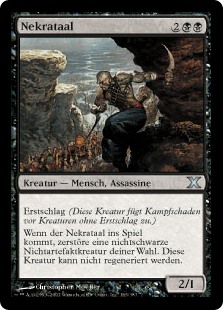 | Rules | First strike When Nekrataal enters the battlefield, destroy target nonartifact, nonblack creature. That creature can't be regenerated. |