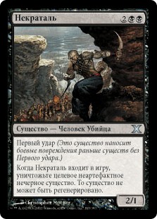 | Rules | First strike When Nekrataal enters the battlefield, destroy target nonartifact, nonblack creature. That creature can't be regenerated. |