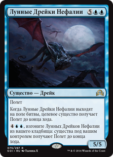 | Rules | Flying When Nephalia Moondrakes enters the battlefield, target creature gains flying until end of turn. , Exile Nephalia Moondrakes from your graveyard: Creatures you control gain flying until end of turn. |