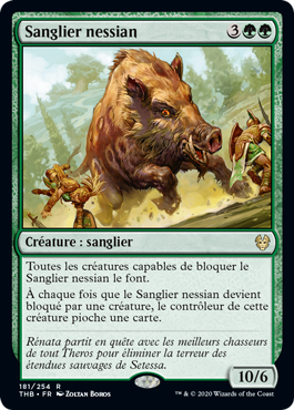 | Rules | All creatures able to block Nessian Boar do so. Whenever Nessian Boar becomes blocked by a creature, that creature's controller draws a card. |