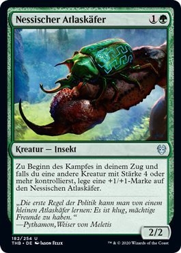 | Rules | At the beginning of combat on your turn, if you control another creature with power 4 or greater, put a +1/+1 counter on Nessian Hornbeetle. |