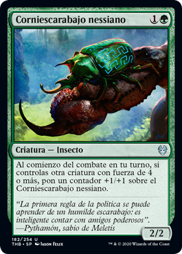 | Rules | At the beginning of combat on your turn, if you control another creature with power 4 or greater, put a +1/+1 counter on Nessian Hornbeetle. |