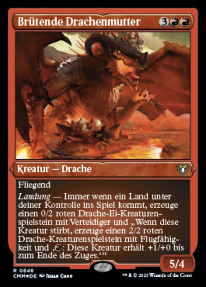 | Rules | Flying Landfall — Whenever a land enters the battlefield under your control, create a 0/2 red Dragon Egg creature token with defender and "When this creature dies, create a 2/2 red Dragon creature token with flying and ': This creature gets +1/+0 until end of turn.'" |
