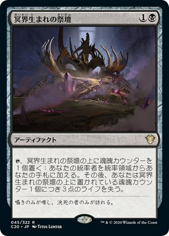 | Rules | , Put a soul counter on Netherborn Altar: Put your commander into your hand from the command zone. Then you lose 3 life for each soul counter on Netherborn Altar. |