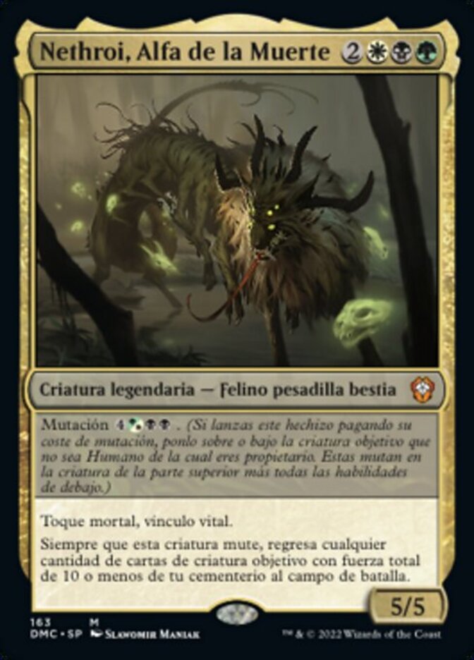 | Rules | Mutate (If you cast this spell for its mutate cost, put it over or under target non-Human creature you own. They mutate into the creature on top plus all abilities from under it.) Deathtouch, lifelink Whenever this creature mutates, return any number of target creature cards with total power 10 or less from your graveyard to the battlefield. |