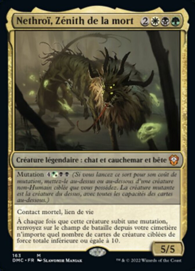 | Rules | Mutate (If you cast this spell for its mutate cost, put it over or under target non-Human creature you own. They mutate into the creature on top plus all abilities from under it.) Deathtouch, lifelink Whenever this creature mutates, return any number of target creature cards with total power 10 or less from your graveyard to the battlefield. |