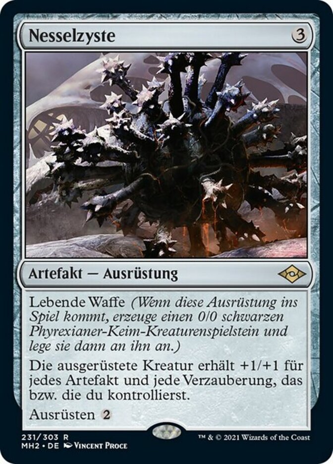 | Rules | Living weapon (When this Equipment enters the battlefield, create a 0/0 black Phyrexian Germ creature token, then attach this to it.) Equipped creature gets +1/+1 for each artifact and/or enchantment you control. Equip |