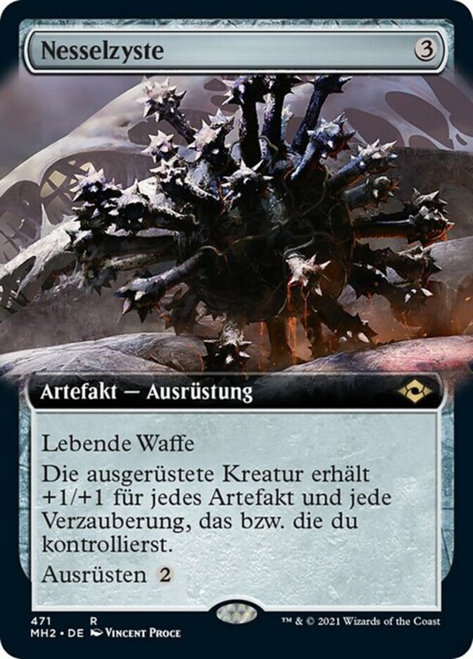 | Rules | Living weapon (When this Equipment enters the battlefield, create a 0/0 black Phyrexian Germ creature token, then attach this to it.) Equipped creature gets +1/+1 for each artifact and/or enchantment you control. Equip |