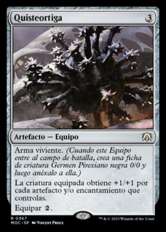 | Rules | Living weapon (When this Equipment enters the battlefield, create a 0/0 black Phyrexian Germ creature token, then attach this to it.) Equipped creature gets +1/+1 for each artifact and/or enchantment you control. Equip |
