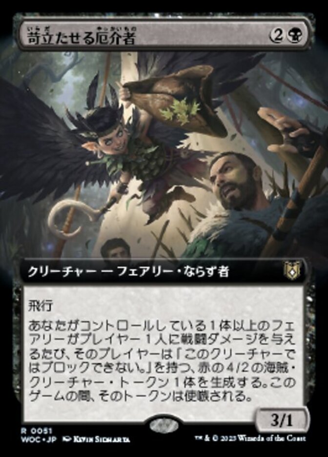 | Rules | Flying Whenever one or more Faeries you control deal combat damage to a player, that player creates a 4/2 red Pirate creature token with "This creature can't block." The token is goaded for the rest of the game. (It attacks each combat if able and attacks a player other than you if able.) |