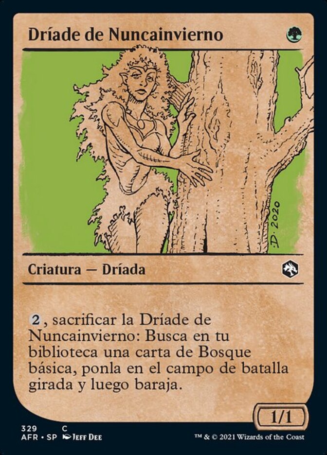 | Flavor | Its life force entwined with its tree, a dryad is an elusive and solitary being that wishes only to be left alone. |