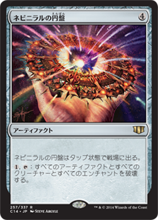 | Rules | Nevinyrral's Disk enters the battlefield tapped. , : Destroy all artifacts, creatures, and enchantments. |