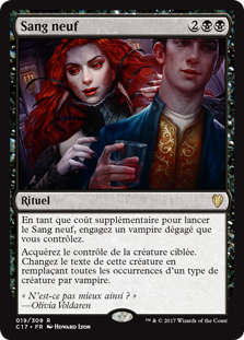 | Rules | As an additional cost to cast this spell, tap an untapped Vampire you control. Gain control of target creature. Change the text of that creature by replacing all instances of one creature type with Vampire. |
