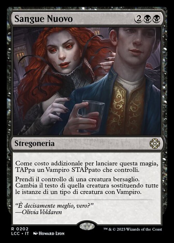 | Rules | As an additional cost to cast this spell, tap an untapped Vampire you control. Gain control of target creature. Change the text of that creature by replacing all instances of one creature type with Vampire. |