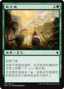 | Rules | Enchant land When New Horizons enters the battlefield, put a +1/+1 counter on target creature you control. Enchanted land has ": Add two mana of any one color." |