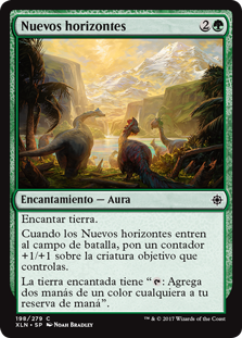 | Rules | Enchant land When New Horizons enters the battlefield, put a +1/+1 counter on target creature you control. Enchanted land has ": Add two mana of any one color." |