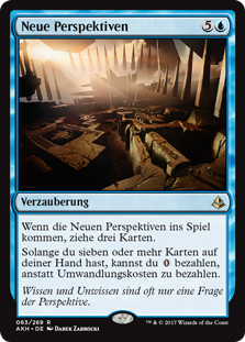 | Rules | When New Perspectives enters the battlefield, draw three cards. As long as you have seven or more cards in hand, you may pay rather than pay cycling costs. |