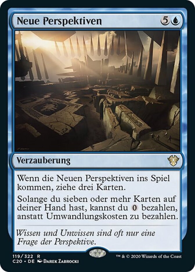 | Rules | When New Perspectives enters the battlefield, draw three cards. As long as you have seven or more cards in hand, you may pay rather than pay cycling costs. |