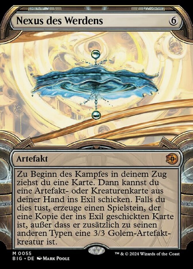 | Rules | At the beginning of combat on your turn, draw a card. Then you may exile an artifact or creature card from your hand. If you do, create a token that's a copy of the exiled card, except it's a 3/3 Golem artifact creature in addition to its other types. |