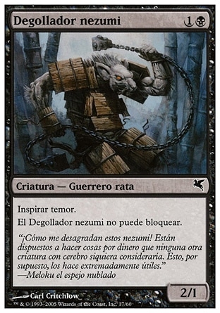 | Rules | Fear (This creature can't be blocked except by artifact creatures and/or black creatures.) Nezumi Cutthroat can't block. |