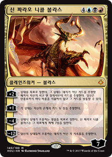 | Rules | +2: Target opponent exiles cards from the top of their library until they exile a nonland card. Until end of turn, you may cast that card without paying its mana cost. +1: Each opponent exiles two cards from their hand. −4: Nicol Bolas, God-Pharaoh deals 7 damage to target opponent, creature an opponent controls, or planeswalker an opponent controls. −12: Exile each nonland permanent your opponents control. |