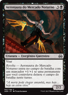 | Rules | Flying Revolt — Night Market Aeronaut enters the battlefield with a +1/+1 counter on it if a permanent you controlled left the battlefield this turn. |