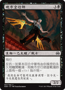 | Rules | Flying Revolt — Night Market Aeronaut enters the battlefield with a +1/+1 counter on it if a permanent you controlled left the battlefield this turn. |