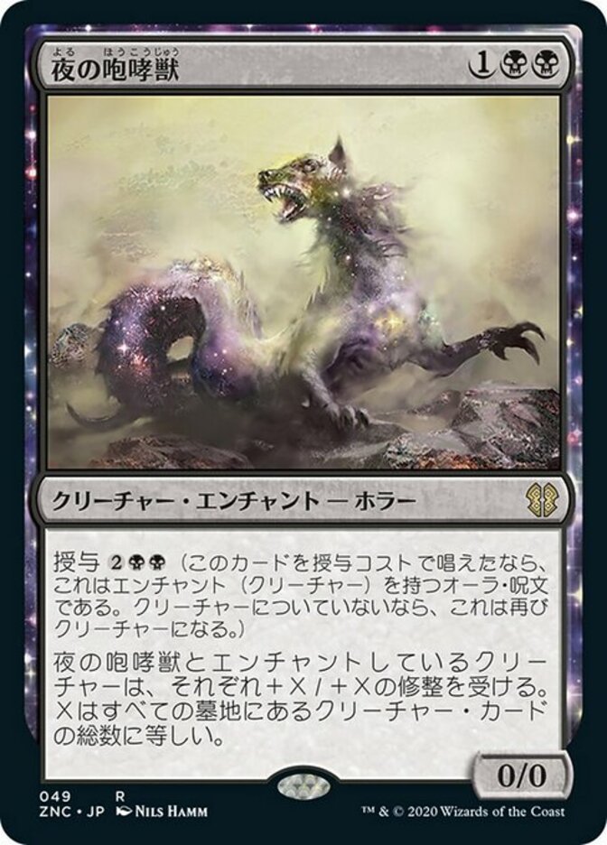 | Rules | Bestow (If you cast this card for its bestow cost, it's an Aura spell with enchant creature. It becomes a creature again if it's not attached to a creature.) Nighthowler and enchanted creature each get +X/+X, where X is the number of creature cards in all graveyards. |