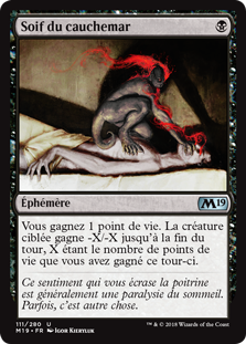 | Rules | You gain 1 life. Target creature gets -X/-X until end of turn, where X is the amount of life you gained this turn. |