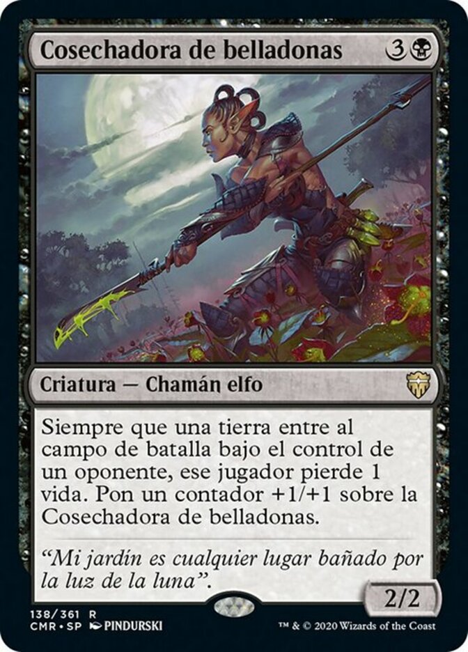 | Rules | Whenever a land enters the battlefield under an opponent's control, that player loses 1 life. Put a +1/+1 counter on Nightshade Harvester. |