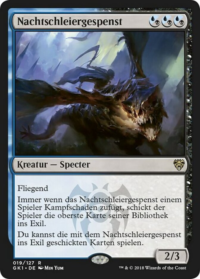 | Rules | Flying Whenever Nightveil Specter deals combat damage to a player, that player exiles the top card of their library. You may play lands and cast spells from among cards exiled with Nightveil Specter. |