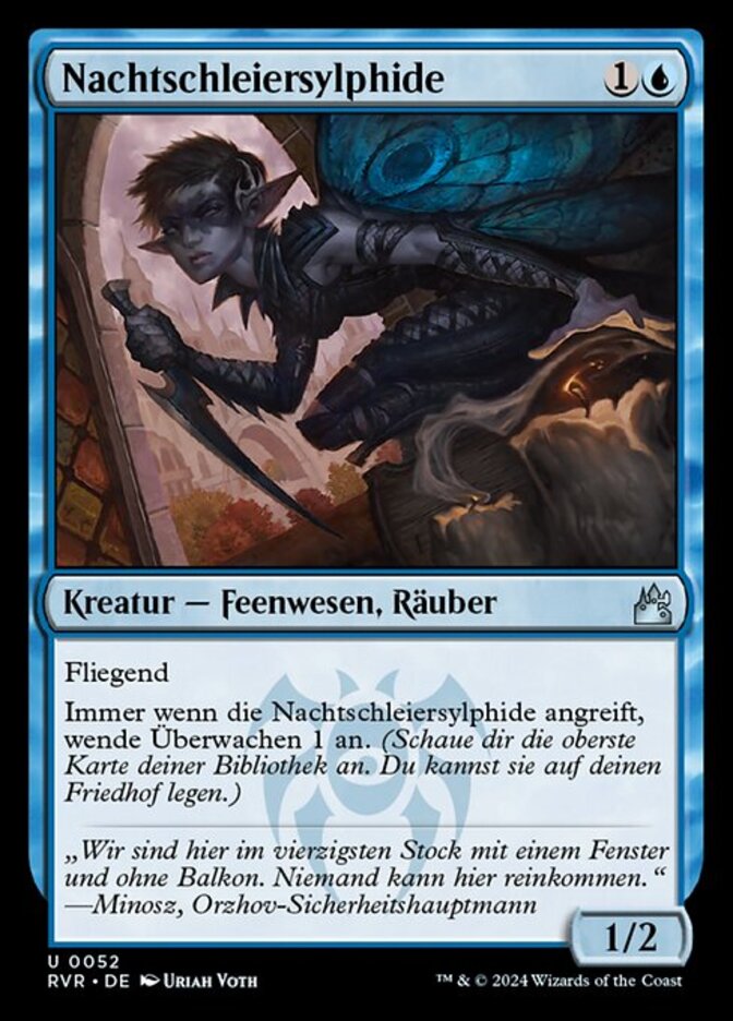 | Rules | Flying Whenever Nightveil Sprite attacks, surveil 1. (Look at the top card of your library. You may put that card into your graveyard.) |