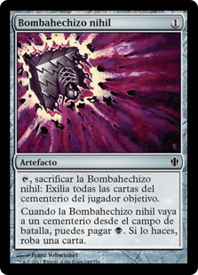 | Rules | , Sacrifice Nihil Spellbomb: Exile target player's graveyard. When Nihil Spellbomb is put into a graveyard from the battlefield, you may pay . If you do, draw a card. |