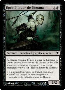 | Rules | Whenever Nimana Sell-Sword or another Ally enters the battlefield under your control, you may put a +1/+1 counter on Nimana Sell-Sword. |