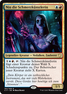 | Rules | , : Nin, the Pain Artist deals X damage to target creature. That creature's controller draws X cards. |
