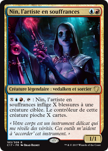 | Rules | , : Nin, the Pain Artist deals X damage to target creature. That creature's controller draws X cards. |