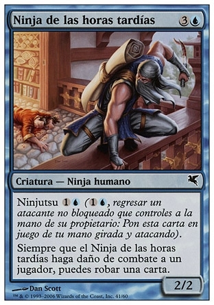 | Rules | Ninjutsu (, Return an unblocked attacker you control to hand: Put this card onto the battlefield from your hand tapped and attacking.) Whenever Ninja of the Deep Hours deals combat damage to a player, you may draw a card. |