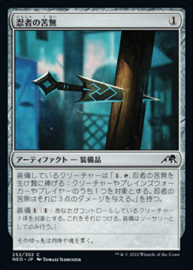 | Rules | Equipped creature has ", , Sacrifice Ninja's Kunai: Ninja's Kunai deals 3 damage to any target." Equip (: Attach to target creature you control. Equip only as a sorcery.) |