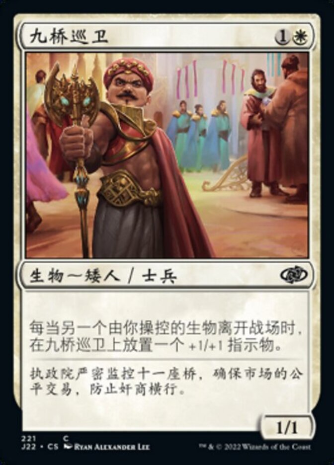 | Rules | Whenever another creature you control leaves the battlefield, put a +1/+1 counter on Ninth Bridge Patrol. |