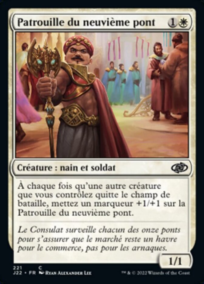 | Rules | Whenever another creature you control leaves the battlefield, put a +1/+1 counter on Ninth Bridge Patrol. |