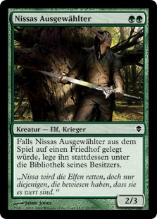 | Rules | If Nissa's Chosen would die, put it on the bottom of its owner's library instead. |