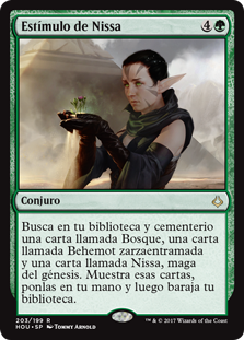 | Rules | Search your library and graveyard for a card named Forest, a card named Brambleweft Behemoth, and a card named Nissa, Genesis Mage. Reveal those cards, put them into your hand, then shuffle. |